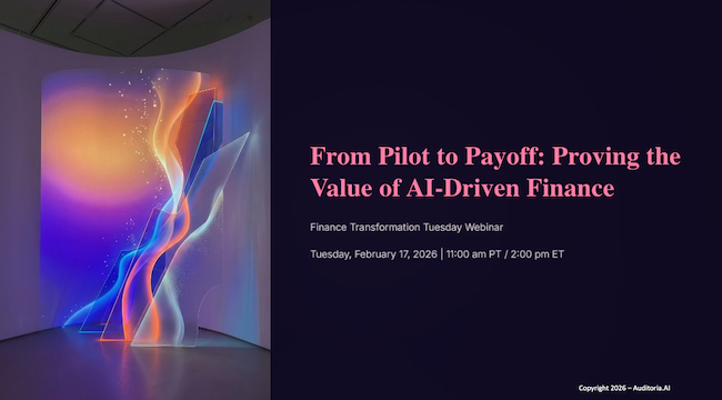 Join our webinar specifically designed for finance teams and CFOs in the corporate enterprise sector running Workday Financial Management. Hear how Auditoria.AI augments Workday FINS with AI-based intelligent automation technology that revolutionizes financial processes, enhances accuracy, and drives unparalleled efficiency.