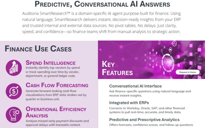 Auditoria SmartResearch™ provides instant, decision-ready financial insights, eliminating manual analysis and enabling faster strategic action.
